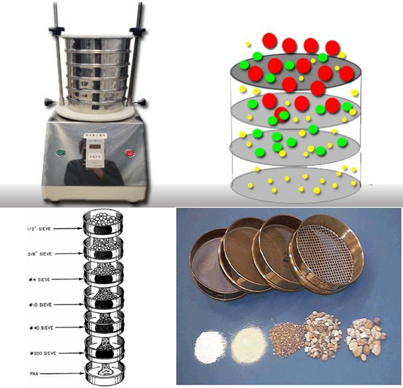 電磁試驗篩由底座、電磁發(fā)生器、篩盤及標(biāo)準(zhǔn)篩組成。采用電磁作為驅(qū)動力,使產(chǎn)品均一分布于整個篩網(wǎng),并做三維振蕩(具有上下振動、前后往復(fù)運(yùn)動、左右擺動三種振動方式),這種特殊的振蕩方式有效地防止近篩顆粒堵塞篩孔,使得篩下顆粒得以有效通過,根據(jù)粒度分級的需要用戶可以選用不同目數(shù)的標(biāo)準(zhǔn)篩,使小于篩網(wǎng)??的物料顆粒篩入下層篩框內(nèi),以達(dá)到分離、分級、確定粒徑的目的。