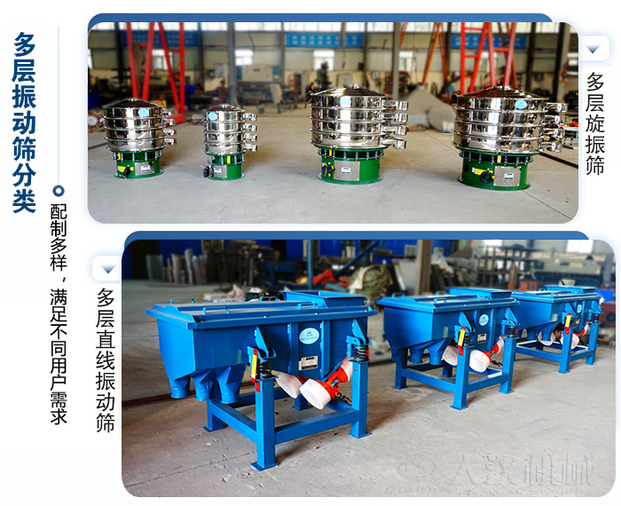 多層振動篩可用于粉末,顆粒,液體物料篩分和分級,篩網(wǎng)有2-6層可選,可將物料篩分成3-6種不同規(guī)格粒度,分多層直線振動篩和多層旋振篩,材質(zhì)有碳鋼,不銹鋼,塑料可選。