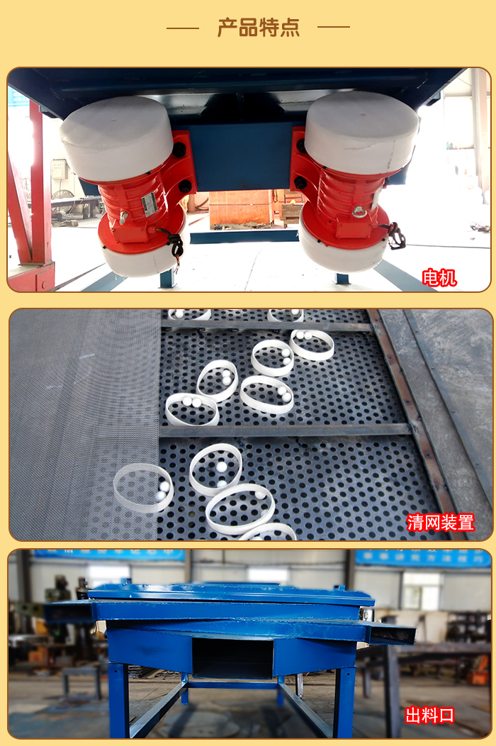 6、設(shè)備在停機(jī)時(shí)產(chǎn)生瞬間的共振區(qū),此時(shí)振幅和噪聲會(huì)明顯增大,屬正常現(xiàn)象,設(shè)備在開停機(jī)前,篩面上不得有存留物料,篩網(wǎng)需經(jīng)常檢查是否張緊、破損,如有破損要即時(shí)更換。